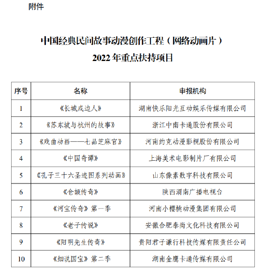 國家廣電總局:確定10部網絡動畫片為2022年重點扶持項目