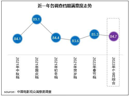 日前,由中國電影藝術研究中心聯合藝恩數據進行的中國電影觀眾滿意度調查項目,對近三個月(6月15日-9月15日,涵蓋暑期及中秋節)以來上映的15部影片進行了觀眾滿意度調查。調研結果顯示,這15部影片中有13部進入“滿意”區間(滿意度≥80分),其中主調查的13部影片綜合滿意度84.7分,在近一年調查的6個檔期中滿意度居于中間水平。