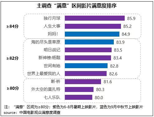 中國電影觀眾滿意度調查:近三個月15部影片中有13部進入“滿意”區間