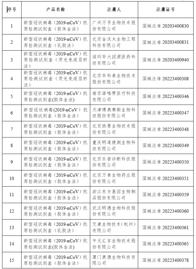 12月22日,經(jīng)國(guó)家藥監(jiān)局審查,批準(zhǔn)艾維可生物科技有限公司和邁克生物股份有限公司的2個(gè)新冠病毒抗原檢測(cè)試劑產(chǎn)品。截至目前,國(guó)家藥監(jiān)局已批準(zhǔn)44個(gè)新冠病毒抗原檢測(cè)試劑產(chǎn)品。
