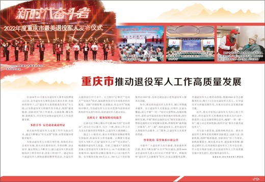 自2018年11月重慶市退役軍人事務局掛牌成立以來,全市退役軍人事務系統在重慶市委、市政府的領導下,以“退役軍人獲得感成色更足”為主線,以發揮退役軍人積極作用為重點,按照“提質提速、創新創優”的工作要求,完善政策、健全機制、狠抓落實,用實際行動推動退役軍人工作高質量發展。
