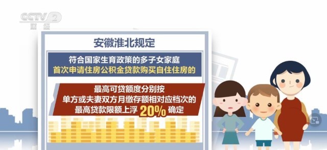 安徽淮北規定,符合國家生育政策的多子女家庭,首次申請住房公積金貸款購買自住住房的,最高可貸額度分別按單方或夫妻雙方月繳存額相對應檔次的最高貸款限額上浮20%確定。