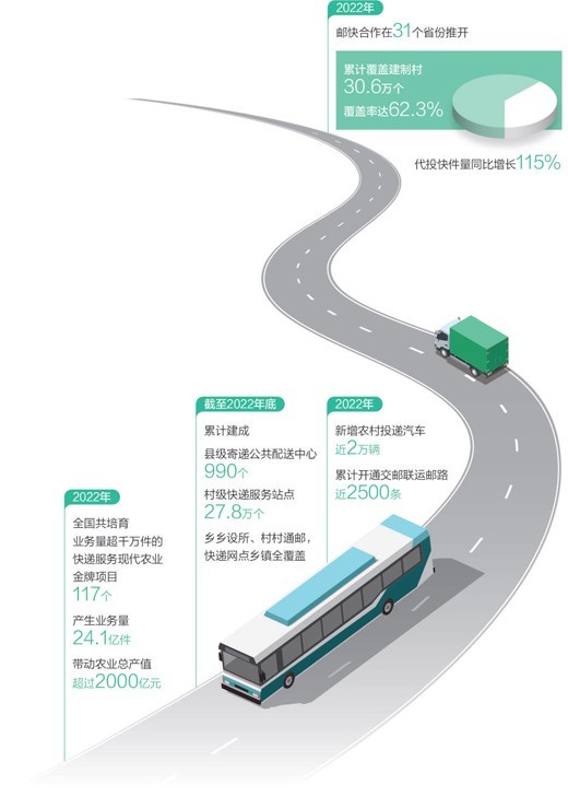放眼全國,每天,1億多件快遞包裹在農村地區流動。隨著農村寄遞物流體系的加快建設和快遞進村覆蓋率的持續提升,快遞業將進一步發揮在促進消費升級、暢通經濟循環方面的作用,為促進城鄉商品流通、拓展農村消費、推進鄉村振興貢獻力量。