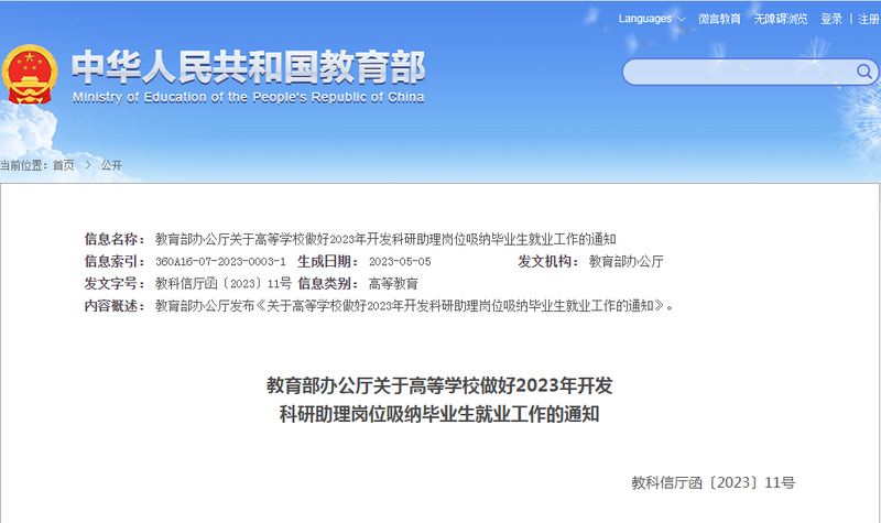 中國青年報客戶端北京5月9日電(中青報·中青網記者 葉雨婷)記者今天從教育部獲悉,教育部辦公廳發布“關于高等學校做好2023年開發科研助理崗位吸納畢業生就業工作的通知”指出,要加強組織領導,統籌科研、人事、財務、就業等相關部門,充分挖掘資源和自身潛力,切實推進開發科研助理崗位吸納2023屆高校畢業生就業工作。教育部將把科研助理崗位及實聘人數作為安排推薦免試攻讀研究生名額的重要參考因素。