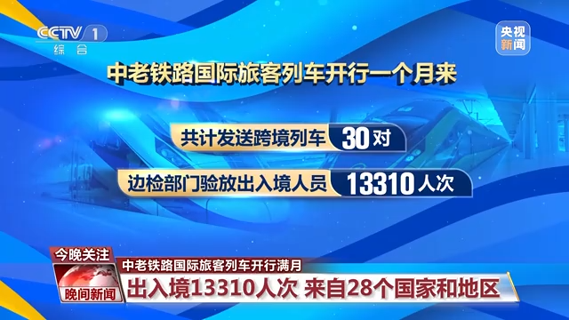 中老鐵路國際旅客列車開行一個月來,共計發送跨境列車30對,邊檢部門驗放出入境人員13310人次。從地域來看,這些出入境旅客分別來自28個國家和地區,其中,來自中國、老撾和泰國的旅客人數居多。從出入境的情況來看,入境7024人次,出境6286人次,入境人數比出境人數多11.7%。入境的外籍旅客中大多是來中國旅游、留學和考察市場的。