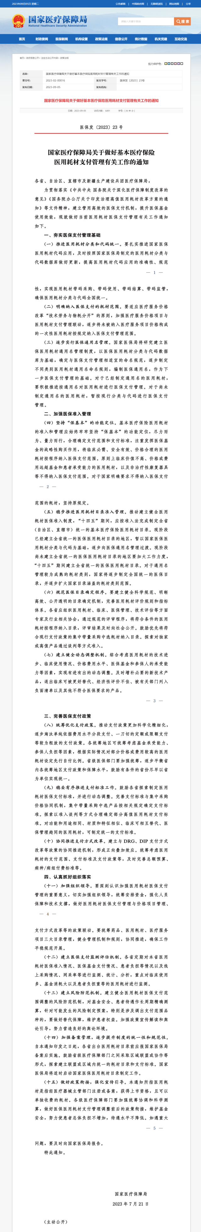 國家醫保局印發通知,明確納入醫保支付的耗材范圍