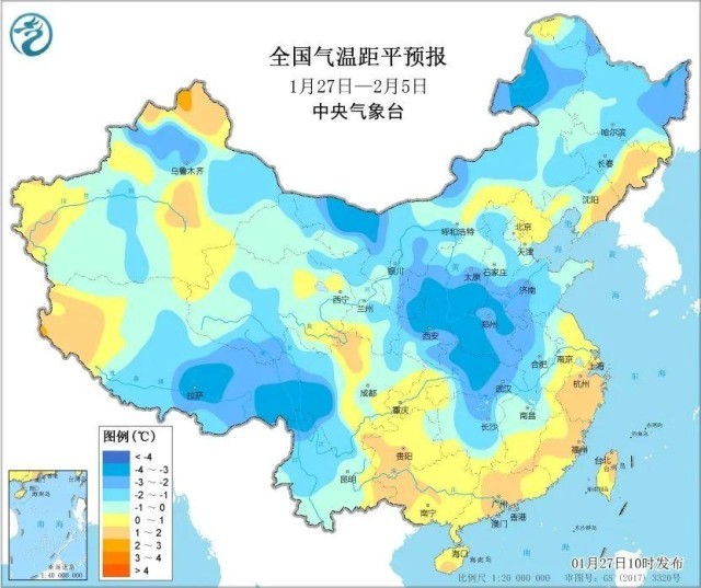 31日開始,冷空氣發力,中東部氣溫將自北向南逐步下跌,北方疊加雨雪影響,氣溫下滑明顯,到2月2日前后,冷空氣將推進到長江以南,屆時淮河以北大部最高氣溫將低于0℃,長江沿線5℃上下,氣溫從偏高轉為明顯偏低。
