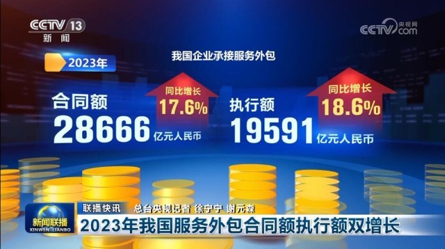 商務部公布的數據顯示,2023年我國企業承接服務外包合同額28666億元人民幣,執行額19591億元,同比分別增長17.6%和18.6%。其中,新能源技術研發服務、檢驗檢測服務、交通工具維修維護服務等離岸服務外包業務增速較快。