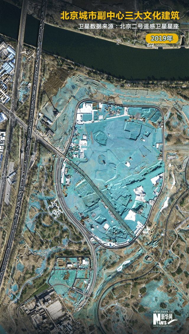 衛(wèi)星圖顯示,在皚皚白雪映襯下,北京藝術(shù)中心的古糧倉造型格外顯眼;北京大運河博物館的“古韻風帆”意蘊濃厚;北京城市圖書館設計別致,好似“赤印”落于城市綠心的畫卷上……