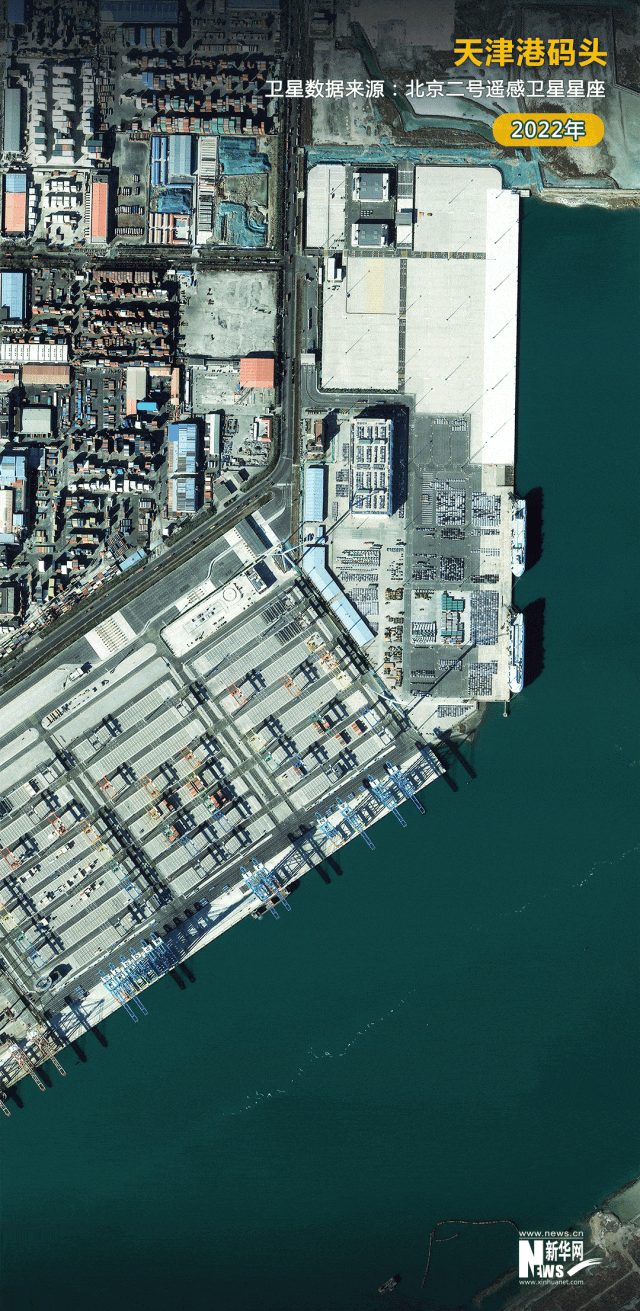 數(shù)據(jù)顯示,天津港2023年完成集裝箱吞吐量2217萬標準箱,同比增長5.5%,創(chuàng)歷史新高。衛(wèi)星見證,一批批待出口的貨物排列在天津港的碼頭上。我國外貿(mào)出口的火熱場景躍然圖上。