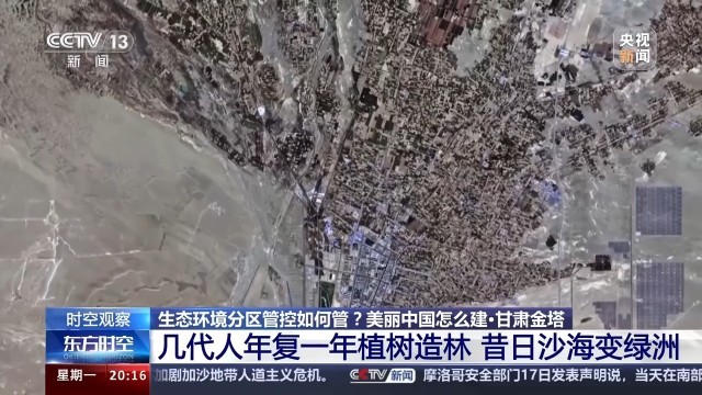 甘肅酒泉金塔縣潮湖林場副場長 王端政:過去的沙進人退變成了現在的人進沙退,過去的荒漠戈壁變成了現在的綠洲,現在金塔的生態環境得到了很大的改善。