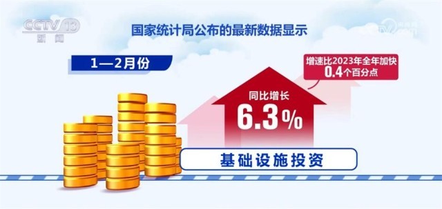 隨著增發國債項目的落地實施和支撐災后應急恢復重建資金的陸續下達,基礎設施投資增速小幅回升。國家統計局公布的最新數據顯示,1—2月份,基礎設施投資同比增長6.3%,增速比2023年全年加快0.4個百分點。其中,水利管理業投資增長13.7%、教育行業投資增長12.1%、基礎設施等民生補短板投資保持良好增長態勢。