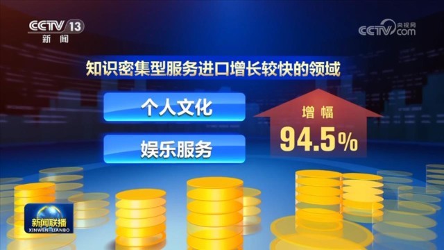 知識密集型服務貿易較快增長。1—2月,知識密集型服務進出口4648.7億元,增長14.2%。其中,知識密集型服務出口增長較快的領域有知識產權使用費、個人文化和娛樂服務,知識密集型服務進口增長較快的領域有個人文化和娛樂服務,增幅為94.5%。
