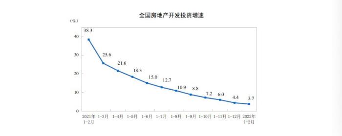 1—2月份,全國房地產開發投資14499億元,同比增長3.7%;其中,住宅投資10769億元,增長3.7%。