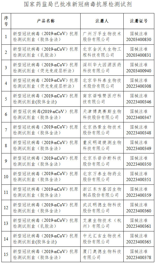 國家藥監局已批準29個新冠病毒抗原檢測試劑