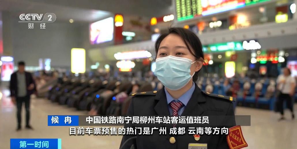 中國鐵路南寧局柳州車站客運(yùn)值班員 候冉:目前車票預(yù)售的熱門是廣州、成都、云南等方向。預(yù)計(jì)整個五一假期,柳州站增加南寧、賀州等方向6趟車。