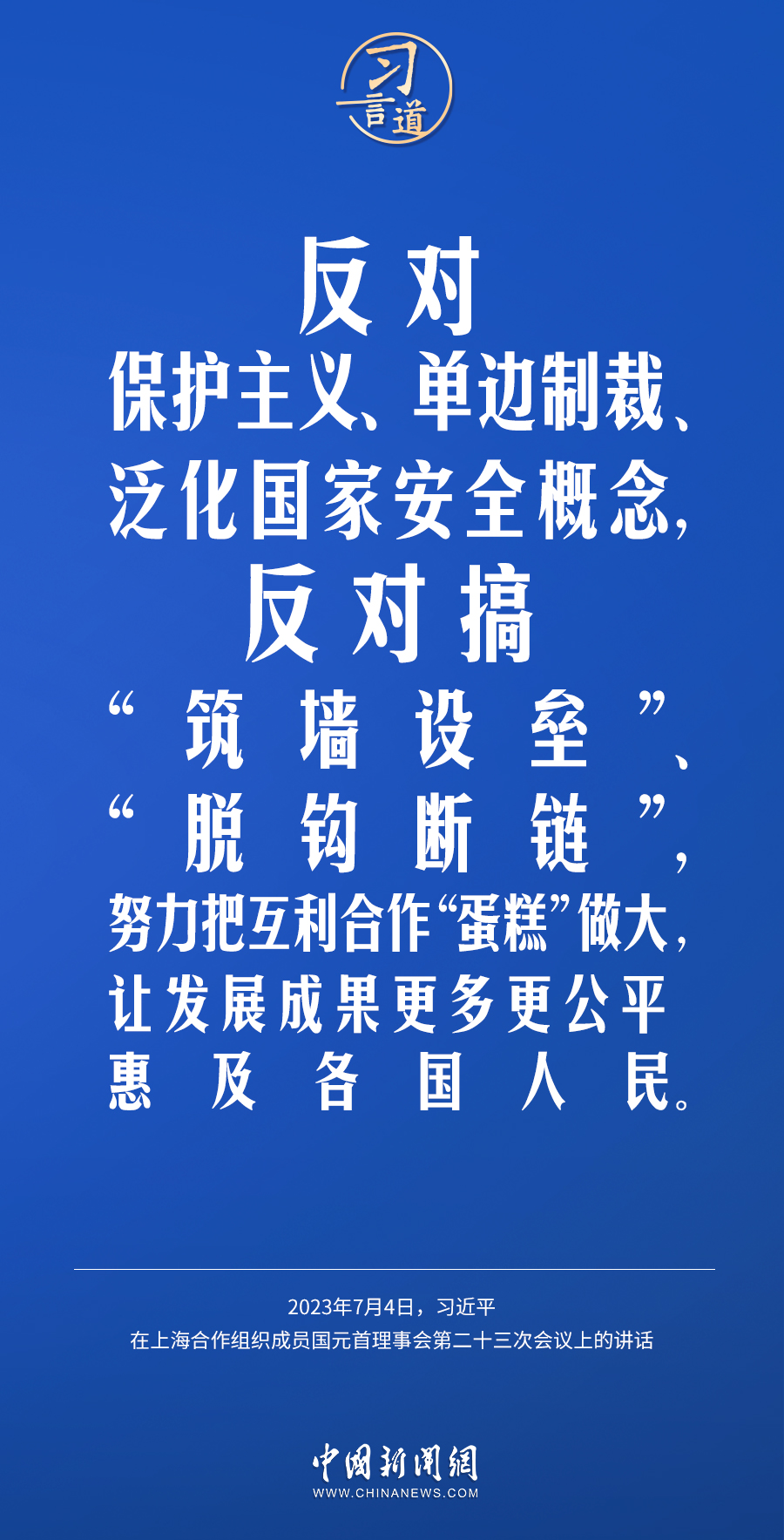 國(guó)家主席習(xí)近平7月4日下午在北京以視頻方式出席上海合作組織成員國(guó)元首理事會(huì)第二十三次會(huì)議并發(fā)表重要講話。習(xí)近平指出——