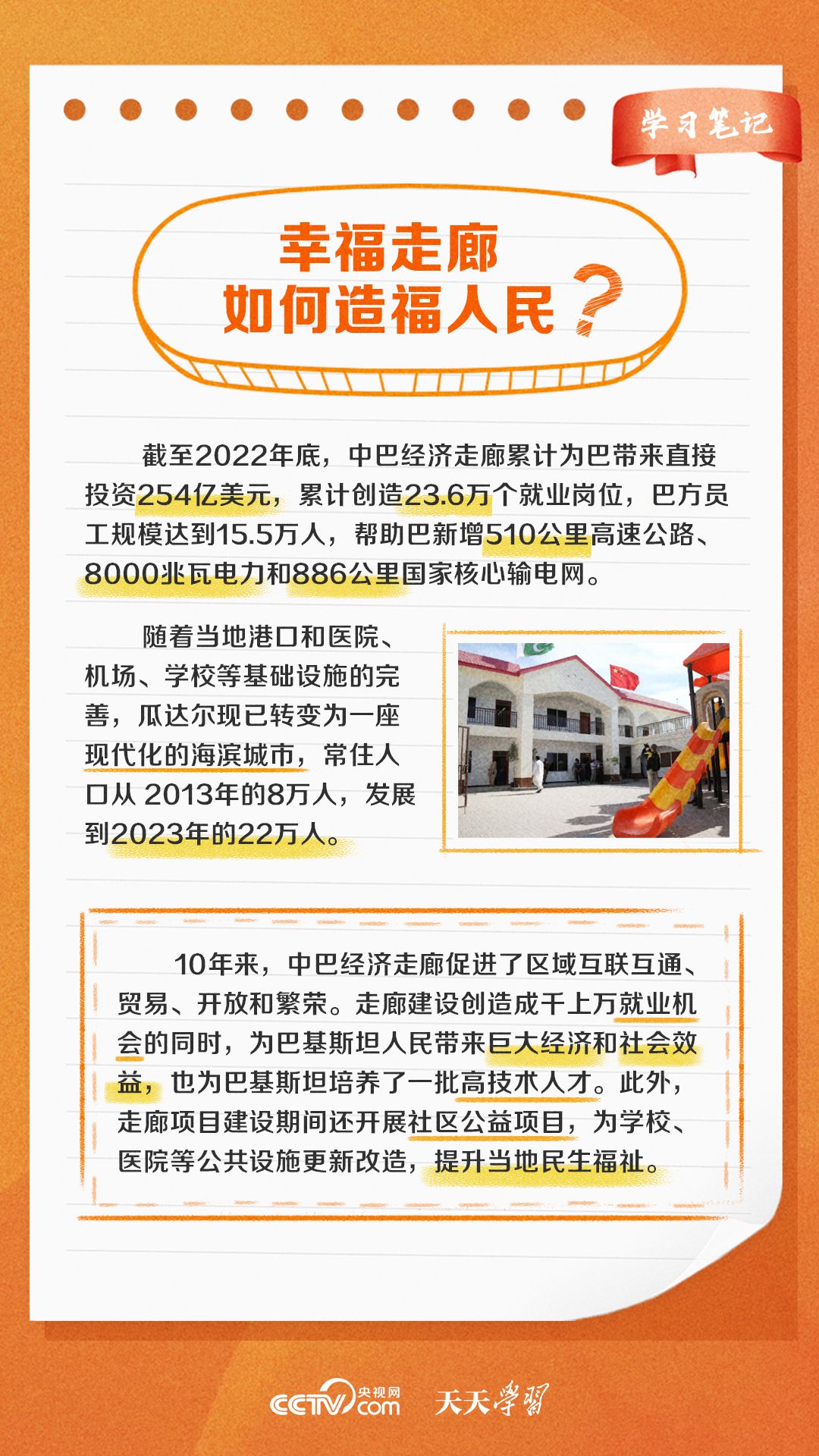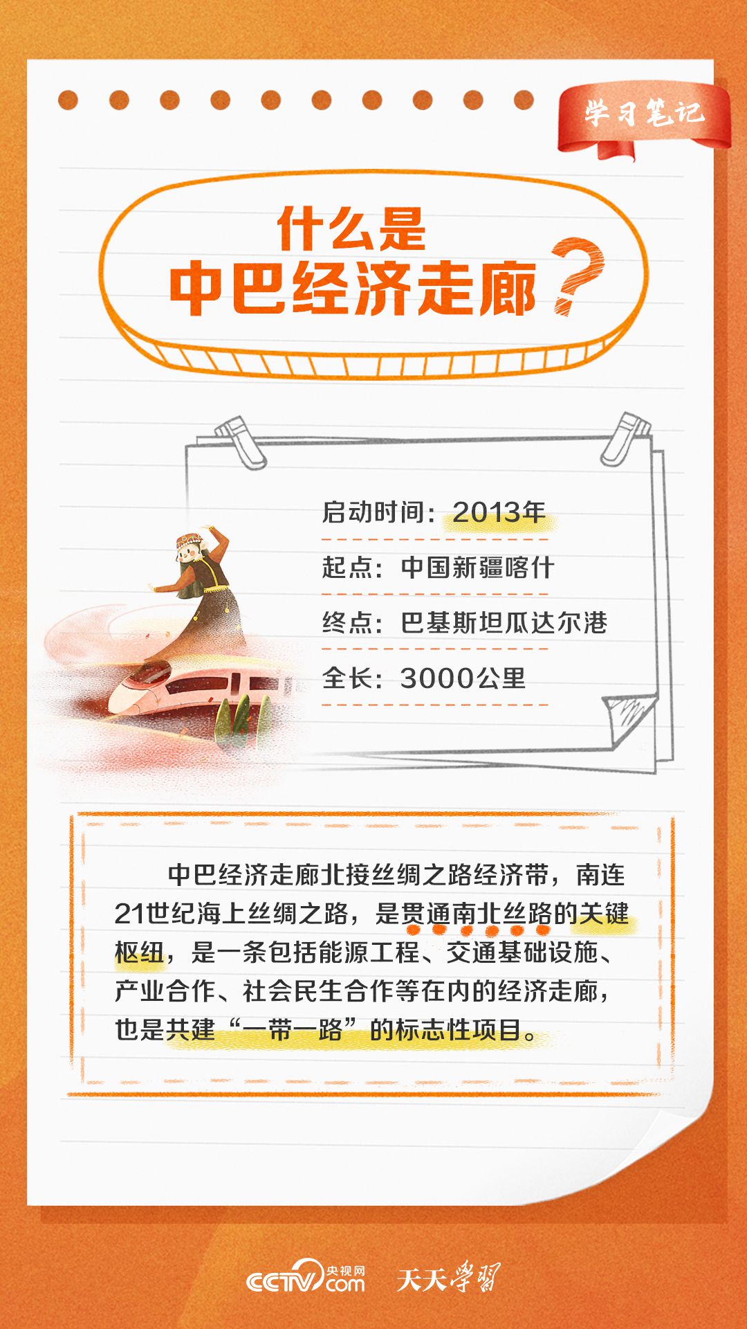 今年是習近平主席提出共建“一帶一路”倡議十周年,也是中巴經濟走廊啟動十周年。經過十年的發展,中巴經濟走廊已成為中巴友誼“新標桿”。央視網《天天學習·學習筆記》特梳理中巴經濟走廊相關知識點,與您一起學習。