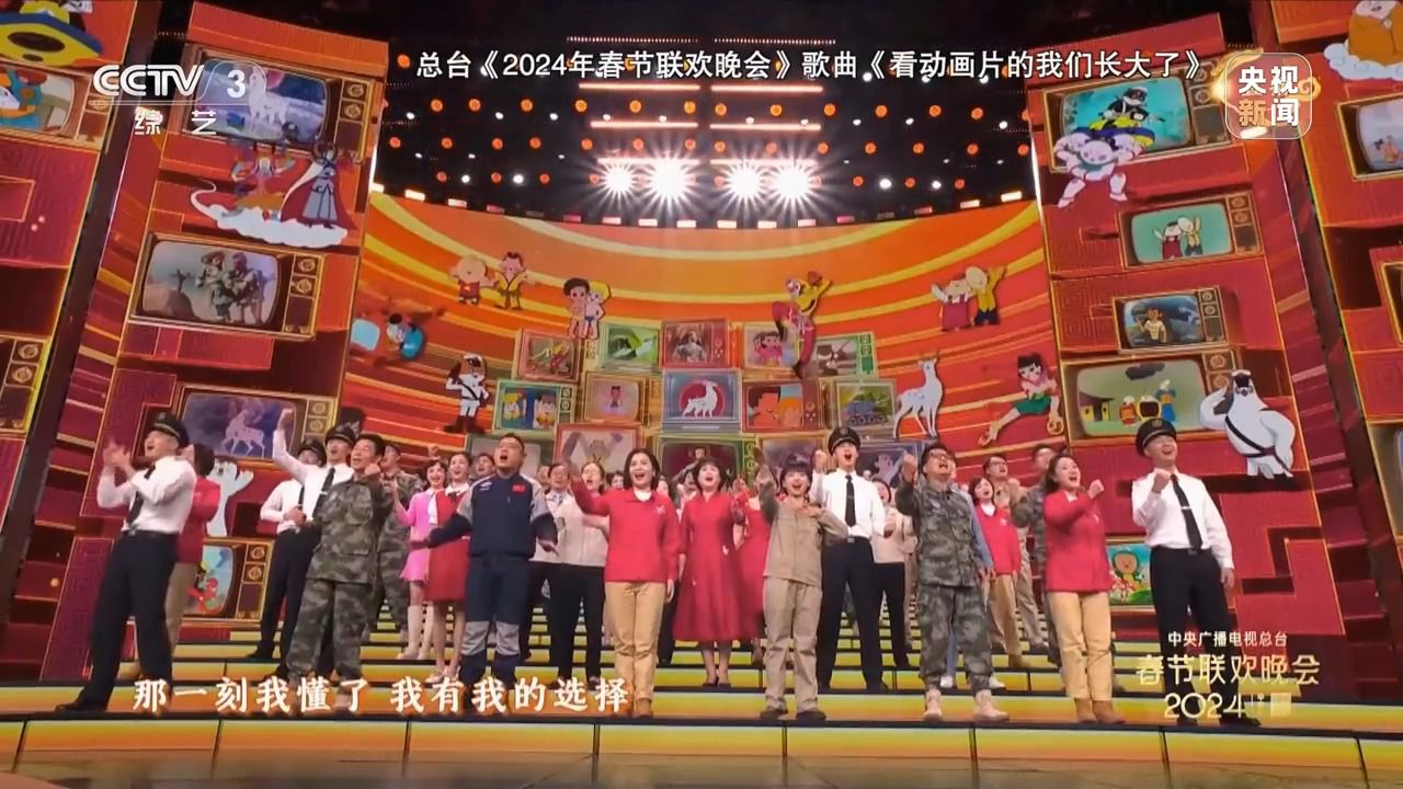 今年的總臺春晚有一首與動畫片有關的歌曲節目,從開飛機坦克的舒克貝塔到探索自然之謎的海爾兄弟,這些經典國產動畫片中的主角伴隨著幾代人度過了美好的童年,也為許多孩子埋下了職業夢想的種子。春晚舞臺上來自各行各業的勞動者,用演唱經典動畫片主題曲的方式訴說著自己成長故事。