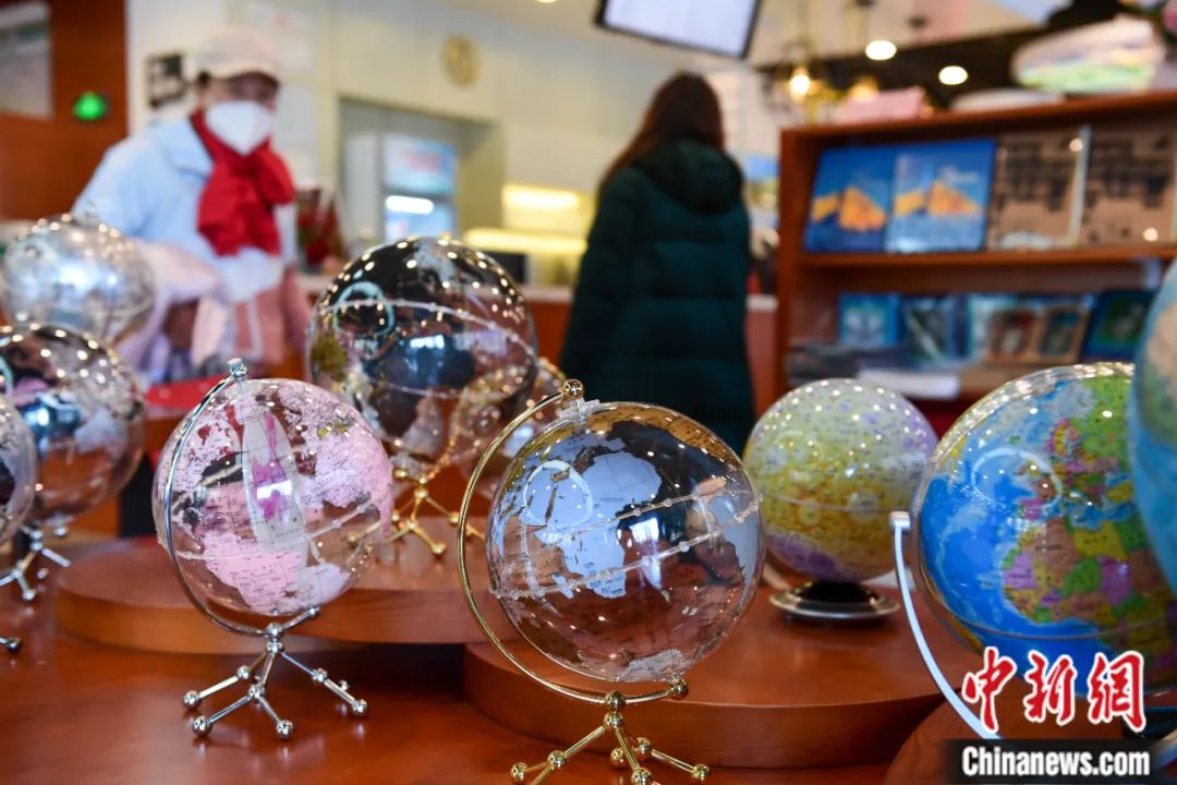 市民在北京一家地圖主題書店選購(gòu)地球儀。田雨昊 攝