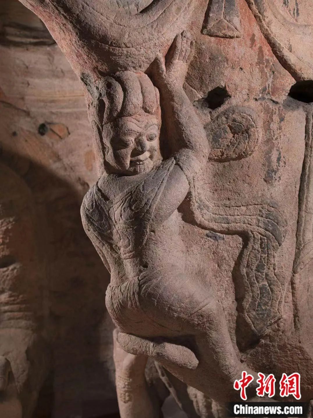第8窟后室北壁上層帷幕東側飛行夜叉。云岡研究院供圖