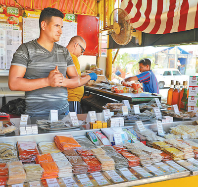 古巴首都哈瓦那一個市場內,商販正在等待顧客前來購買調料。