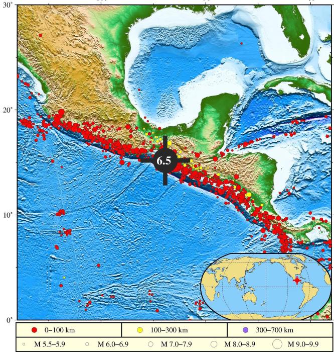 墨西哥恰帕斯州沿岸近海附近發生6.5級左右地震