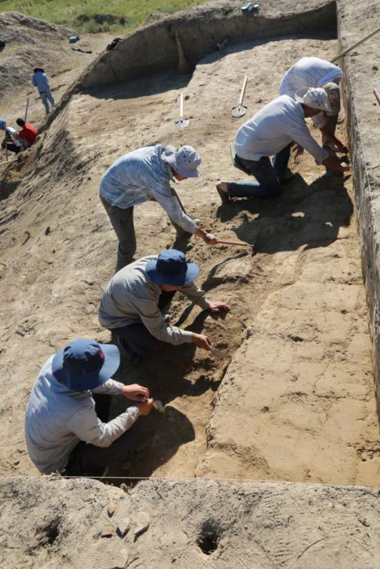 2018年7月5日,中國和吉爾吉斯斯坦考古人員聯合發掘吉爾吉斯斯坦紅河古城西側佛寺遺址。新華社發(受訪者供圖)