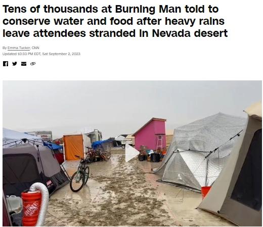 中新網9月3日電 據美國有線電視新聞網(CNN)報道,當地時間2日,美國內華達州黑巖沙漠突降暴雨,數萬名到此地參加“火人節”的游客被困沙漠中。