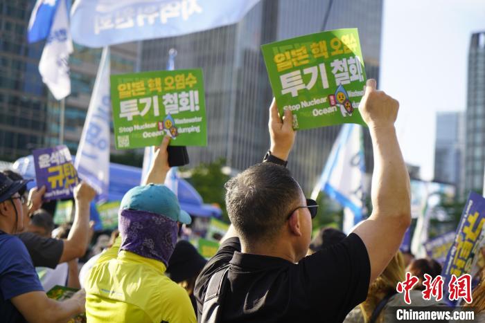 當天下午,集會在首爾中區新聞中心前舉行。中新社記者在現場看到,大批民眾手舉寫有“停止日本排放核污染水行為!”“反對向海洋傾倒福島核污水!”等字樣的標語,并高呼“立即停止向海洋傾倒核污染水!”“禁止進口所有日本水產品!”等口號,要求日本停止向海洋傾倒福島核電站核污染水,并敦促韓國政府向國際海洋法法庭起訴日本。
