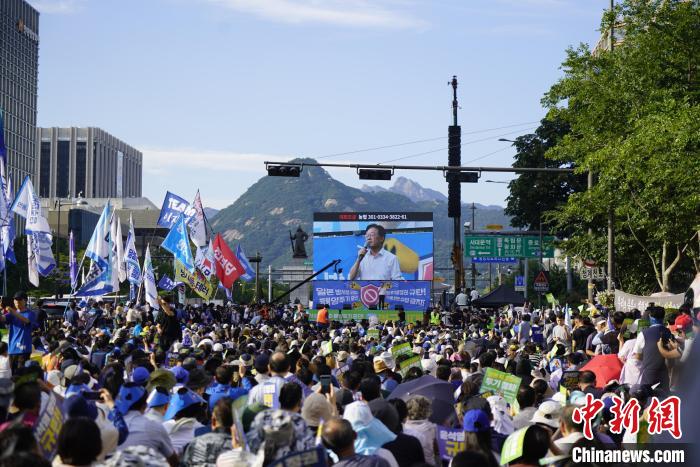 9月2日下午,韓國在野黨與市民團體在首爾市中心再次舉行大規模集會,強烈要求日本政府停止福島核污染水排海行為。圖為集會現場。 中新社記者 劉旭 攝