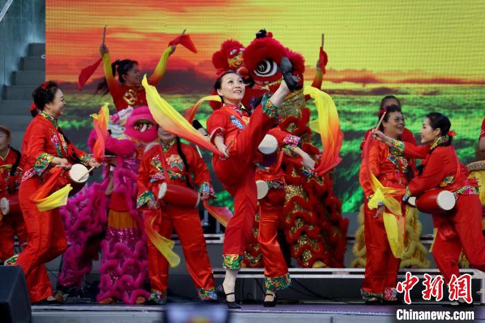 當地時間9月1日,加拿大多倫多,演員在第四屆龍文化節開幕式上進行腰鼓表演。 中新社記者 余瑞冬 攝
