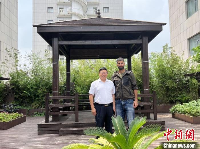 8月2日,在世界針灸學會聯(lián)合會(簡稱世界針聯(lián))北京總部,海德·阿拉維(右)向世界針聯(lián)主席劉保延介紹工作進展。 (天津大學供圖)
