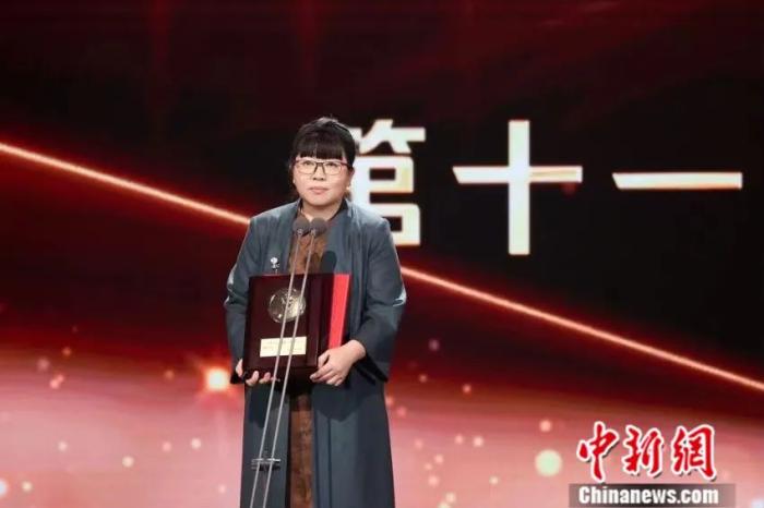 2023年11月19日晚,喬葉獲頒第十一屆茅盾文學獎。浙江衛視供圖