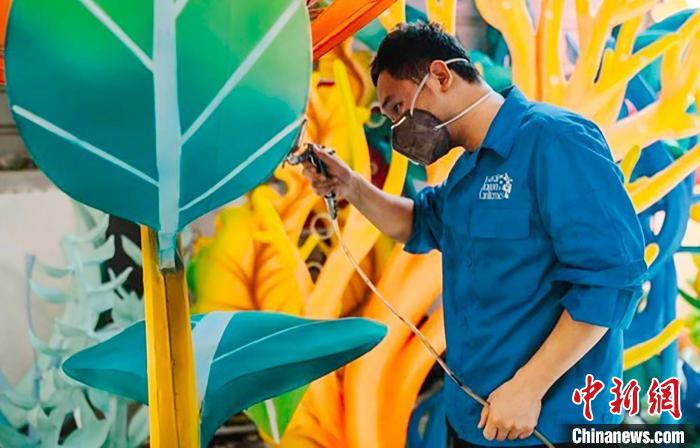 工作人員已經開始投入法國豫園燈會的搭建工作。豫園供圖