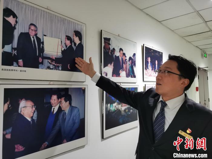 12月1日,南園賓館副總經理羅浩介紹1994年基辛格訪問蘇州時在南園賓館的故事。 中新社記者 鐘升 攝