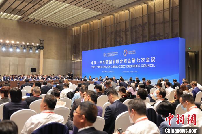 2023年5月15日,中國—中東歐國家聯合商會第七次會議經貿推介洽談會在寧波舉行,中東歐國家商協會代表及企業代表齊聚,聚焦發展新業態、新模式、新商機,共探合作新空間。