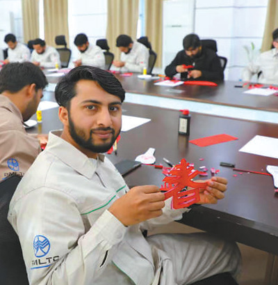 2023年春節期間,巴基斯坦默蒂亞里—拉合爾直流輸電項目中巴方員工在值守工作之余共度春節。
