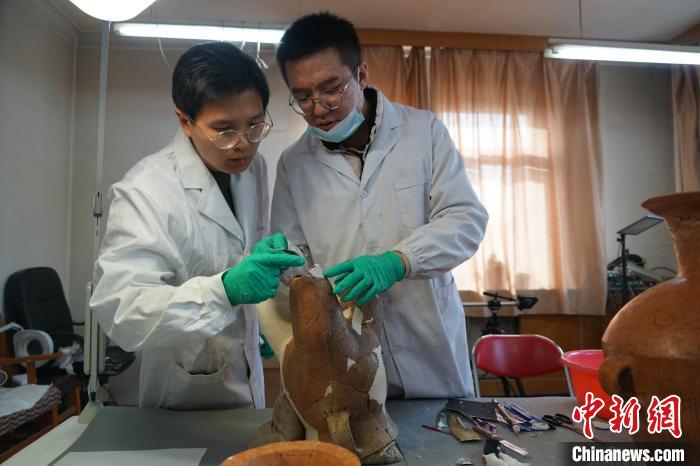 中新網西寧1月24日電 題:探訪喇家遺址受損文物修復現場:古老陶器重煥新生