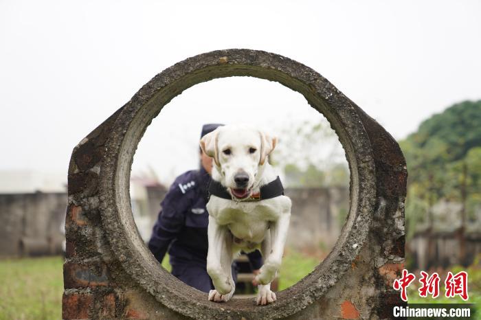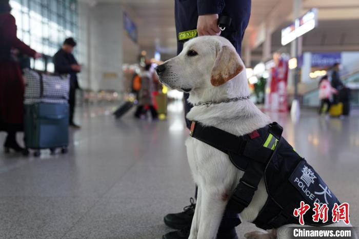 中新網(wǎng)南寧2月5日電 題:“見習”警犬“斯諾”的首個春運:抵御美食誘惑方“過關(guān)”