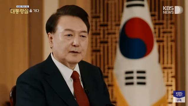2月7日晚,韓國KBS電視臺第一頻道播出獨家訪談節目《特別訪談:走進總統府》,韓國總統尹錫悅回應其夫人金建希收受名牌皮包的爭議。圖片來源:KBS視頻截圖