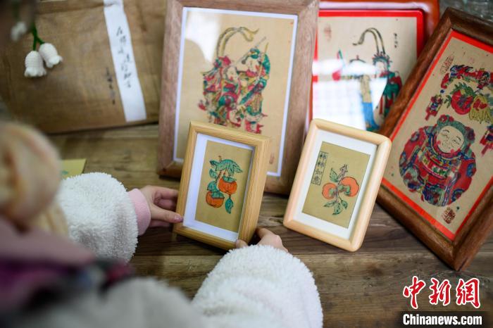 2月6日,國(guó)家級(jí)非遺梁平木版年畫(huà)推出相框版的《柿柿如意》。 中新社記者 何蓬磊 攝