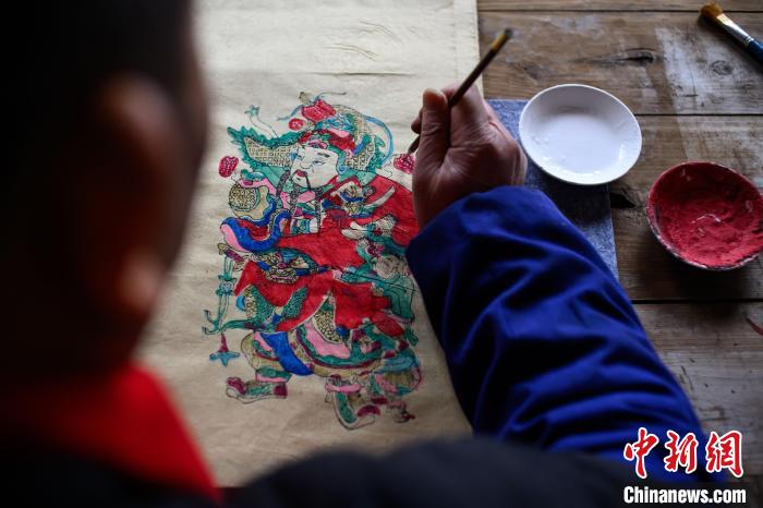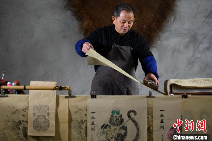 2月6日,梁平木版年畫(huà)國(guó)家級(jí)非遺代表性傳承人徐家輝制作年畫(huà)。中新社記者 何蓬磊 攝