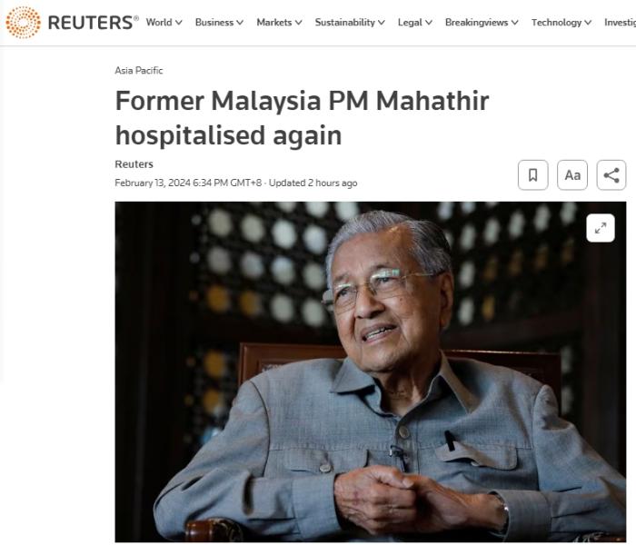 據(jù)此前報(bào)道,馬哈蒂爾曾于1989年因心臟病發(fā)作,在國(guó)家心臟中心接受心臟搭橋手術(shù),并在2007年于該中心接受第二次手術(shù)。
