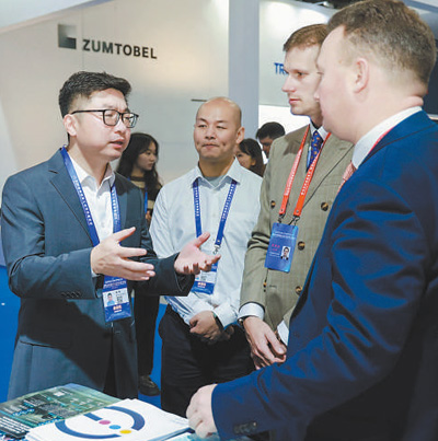 2023年11月,2023金磚國家新工業革命展在福建廈門舉辦。圖為中外企業代表在現場交流。