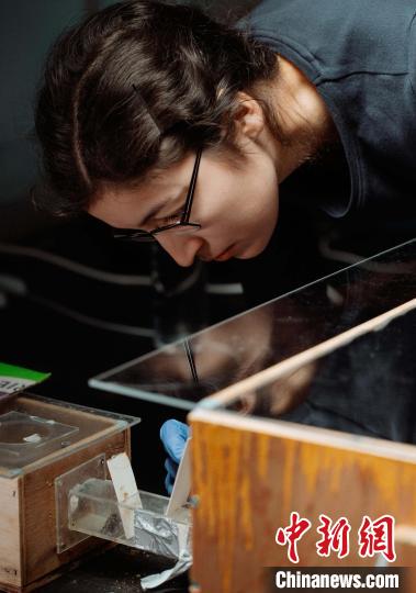 一只經過訓練的示范蜂和一只必須學會解題方法的觀察蜂,在檢查密閉謎題盒上尚無法獲得的獎勵(圖片來自倫敦瑪麗女王大學)。施普林格·自然/供圖