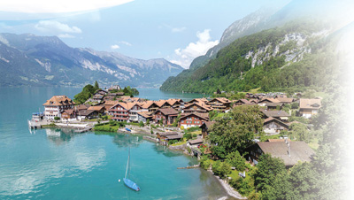 瑞士村莊伊瑟爾特瓦爾德位于阿爾卑斯山布里恩茨湖岸邊,風景如畫,村中自建房與周邊自然環境融為一體。