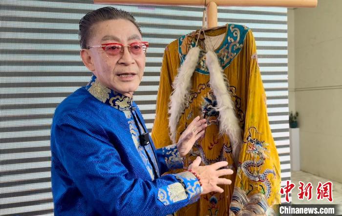 3月16日,在捐贈儀式上,六小齡童介紹父親和自己曾經穿過的蟒袍。 項菁 攝