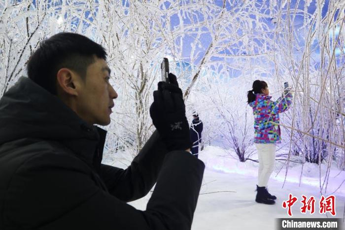 在龐培林看來,室內的霧凇同樣擁有“沉浸式體驗”。他指向噴霧口告訴記者,室內霧凇的形成條件也較為苛刻,制造一場五星霧凇,需要造霧機等設備持續作業一天。隨著游客增多,溫度、濕度也會發生變化,霧凇也會凋謝。