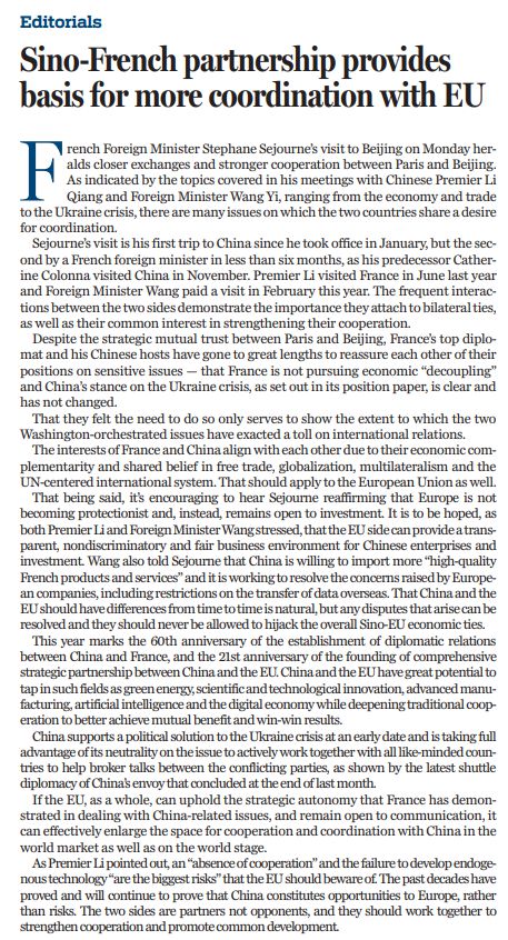 原文標題:Sino-French partnership provides basis for more coordination with EU